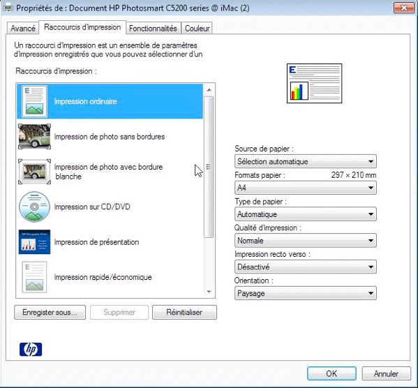 Ici c’est l’imprimante HP PhotoSmart C5200 qui est sur le réseau et connectée à l’iMac.