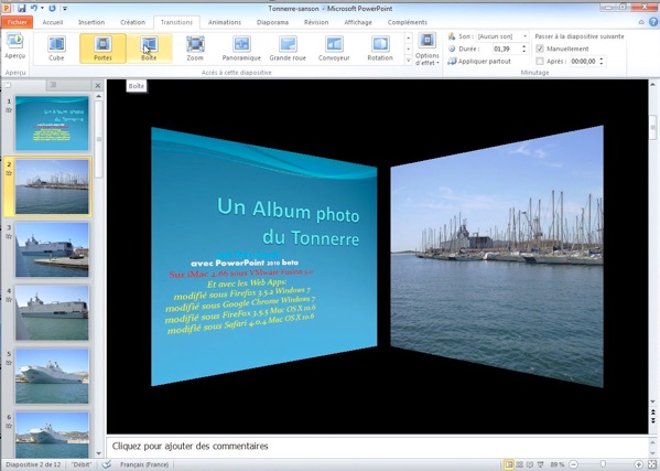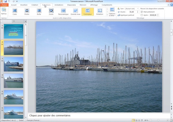 Attention certaines transitions ne seront, peut-être pas, adaptée à toutes les diapositives.