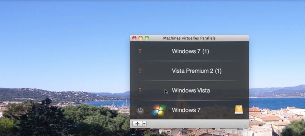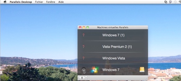 J’avais déjà installé précédemment des machines virtuelles avec une version précédente de Parallells Desktop. J’avais supprimé les espaces disques des 3 premières machines; seule la machine nommée Windows 7 est utilisable (c’est la machine que je viens d’installer).