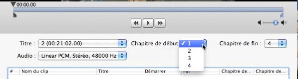 Sélection des films ou chapitres.