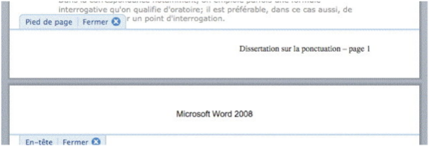 Vous disposez de 2 outils pour passer d’une en-tête à un pied de page : atteindre en-tête et menu déroulant en-tête ou pied de page.