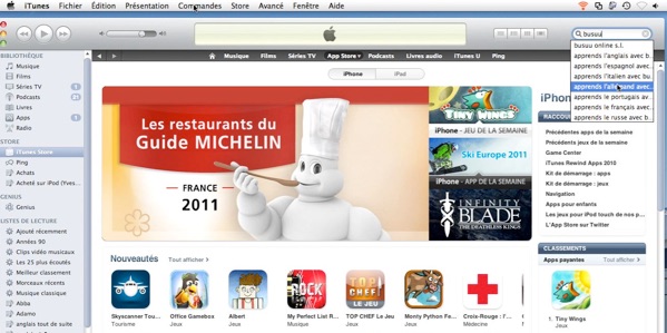 Ici je recherche sur iTunes Busuu qui publie des applications pour apprendre l’anglais et aussi l’allemand, ainsi que d’autres langues.