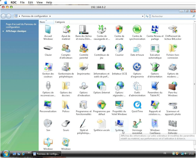 Le réglage de la connexion à distance se fait depuis le panneau de configuration, outil Système.