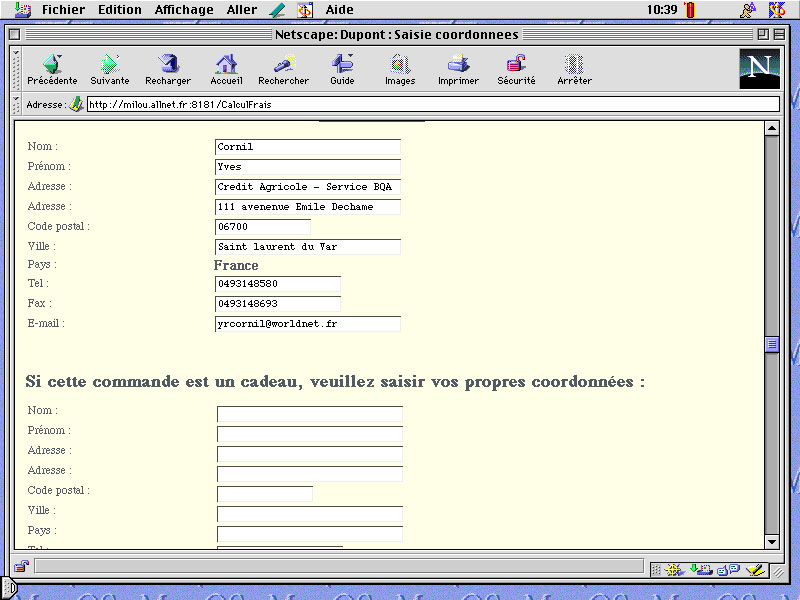 Je choisis mes articles (les écrans ne sont pas présentés ici) puis je donne mes coordonnées pour la livraison