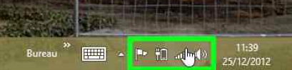 Pour accéder aux réglages Wi-Fi touchez l’icône Wi-Fi située en bas, à droite de la barre de tâches.