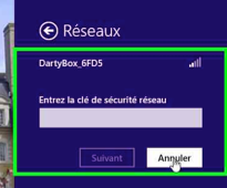 Comme je ne veux pas me connecter à cette Darty Box, je touche le bouton annuler, sinon j’entre le code et je touche le bouton suivant.
