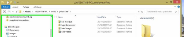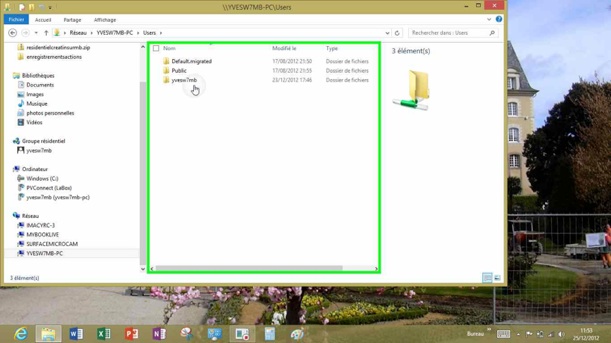 Les dossiers de l’utilisateur yvesw7mb vus depuis la tablette Surface.