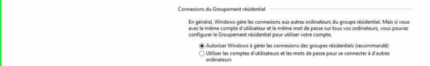 Pour gérer les groupes résidentiels cochez le bouton radio autoriser Windows à gérer les connexions des groupes résidentiels (et c’est conseillé).