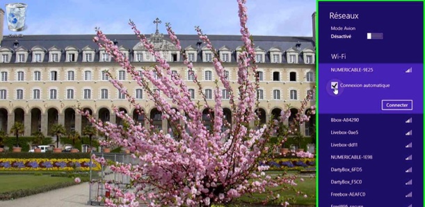 Dans la colonne de droite vous voyez apparaître les réseaux Wi-Fi détectés par la tablette Surface.