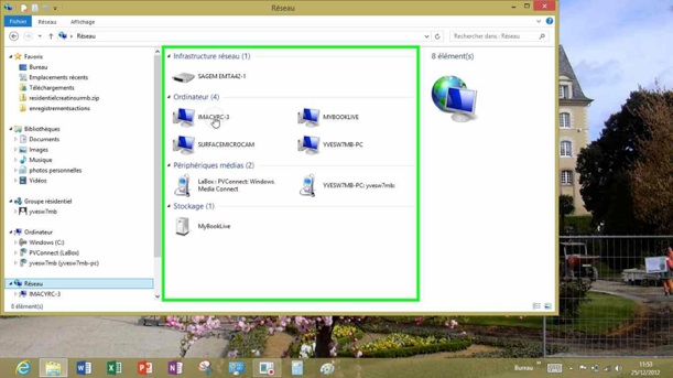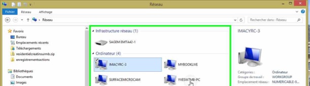Mon petit réseau est composé d’un PC sous Windows 8, d’une tablette Surface, d’un iMac sous OS X 10.8 et d’un disque réseau WD2go. La box est Box by Numéricâble et le réseau est Wi-Fi.