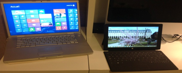 Pour mettre en place mon groupe résidentiel je vais utiliser, à gauche, un PC sous Windows 8 Pro (en fait c’est un MacBook Pro 2.2 sous BootCamp) et à droite une tablette Surface 64 Go sous Windows RT.