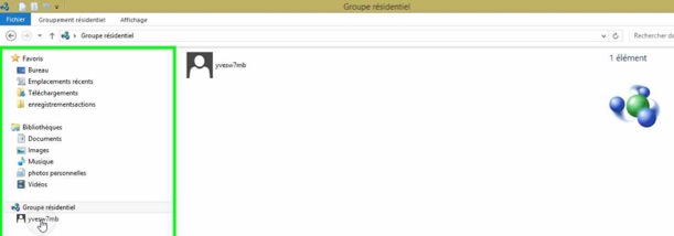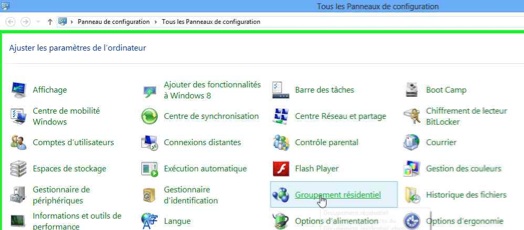 Depuis le panneau de configuration du PC cliquez sur groupement résidentiel.