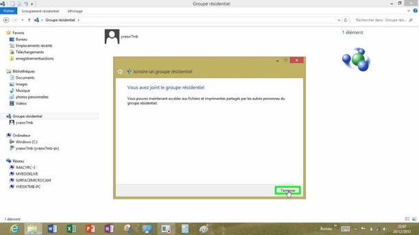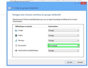 Je vais créer le groupe résidentiel sur le PC ; ainsi la tablette Surface pourra accéder aux dossiers documents, images et autres du PC.