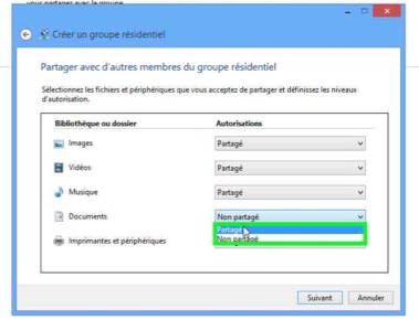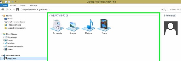 Les dossiers images, vidéos, musique, documents, imprimantes et périphériques sont maintenant partagés.