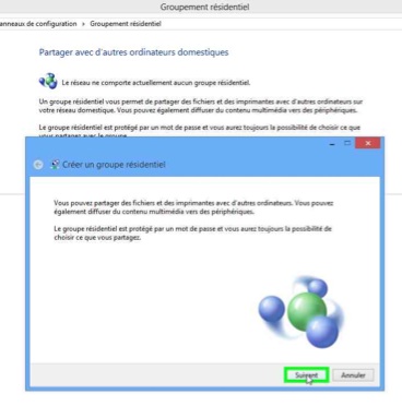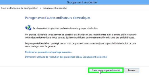 Au préalable j’ai autorisé Windows à créer des groupes résidentiels ; pour en savoir plus reportez-vous au chapitre réseau de ce document.
