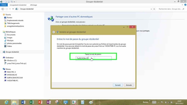 Pour accéder aux fichiers et imprimantes situés sur d’autres ordinateurs ajoutez ces derniers à votre groupe résidentiel. Vous aurez besoin du mot de passe qui est affiché.