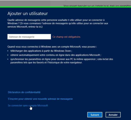 Les 2 comptes sont des comptes Microsoft ; je vais maintenant créer un compte local.