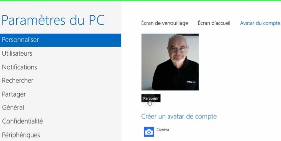 Vous pouvez changer l’image depuis un fichier ou depuis la caméra de la tablette Surface.