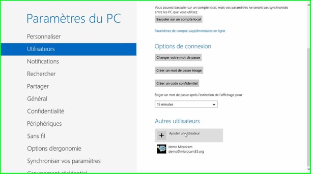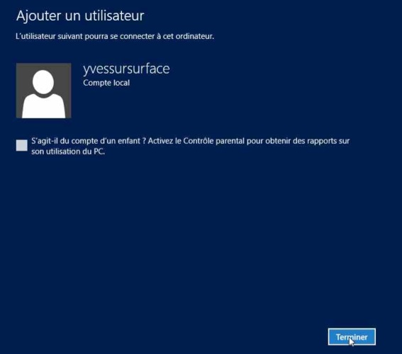 Actuellement la tablette Surface comporte 2 utilisateurs ; je vais en créer un troisième depuis les paramètres utilisateurs.