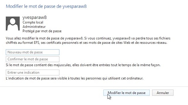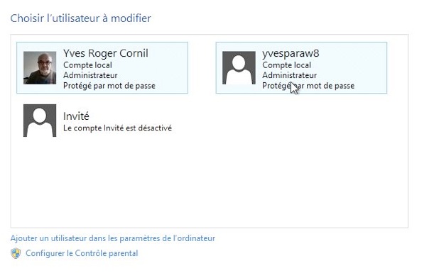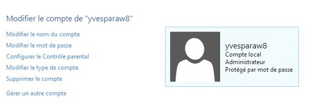 Pour modifier un compte utilisateur allez dans le panneau de configuration > comptes utilisateurs.