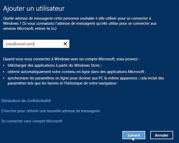 Si vous choisissez de créer un compte Microsoft, donnez l’adresse utilisée comme Windows Live ID.