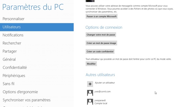Ici j’ai ajouté un compte Microsoft avec le Windows Live ID sur cornil.com.